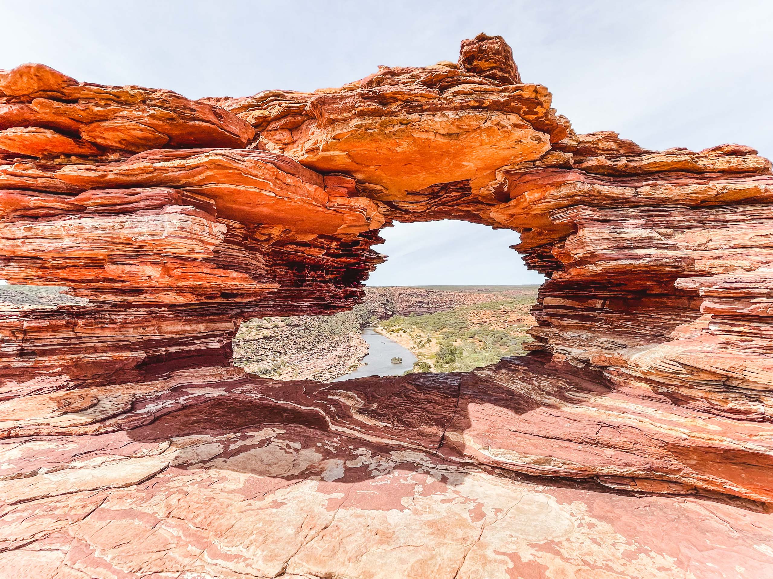 Nature’s Window ist wohl der meist fotografierte Spot im Kalbarri NP. Ein natürliches Felsfenster rahmt den Blick auf den Murchison River perfekt ein. Der kurze Spaziergang dorthin (ca. 800 Meter) ist auch mit Kindern gut machbar.